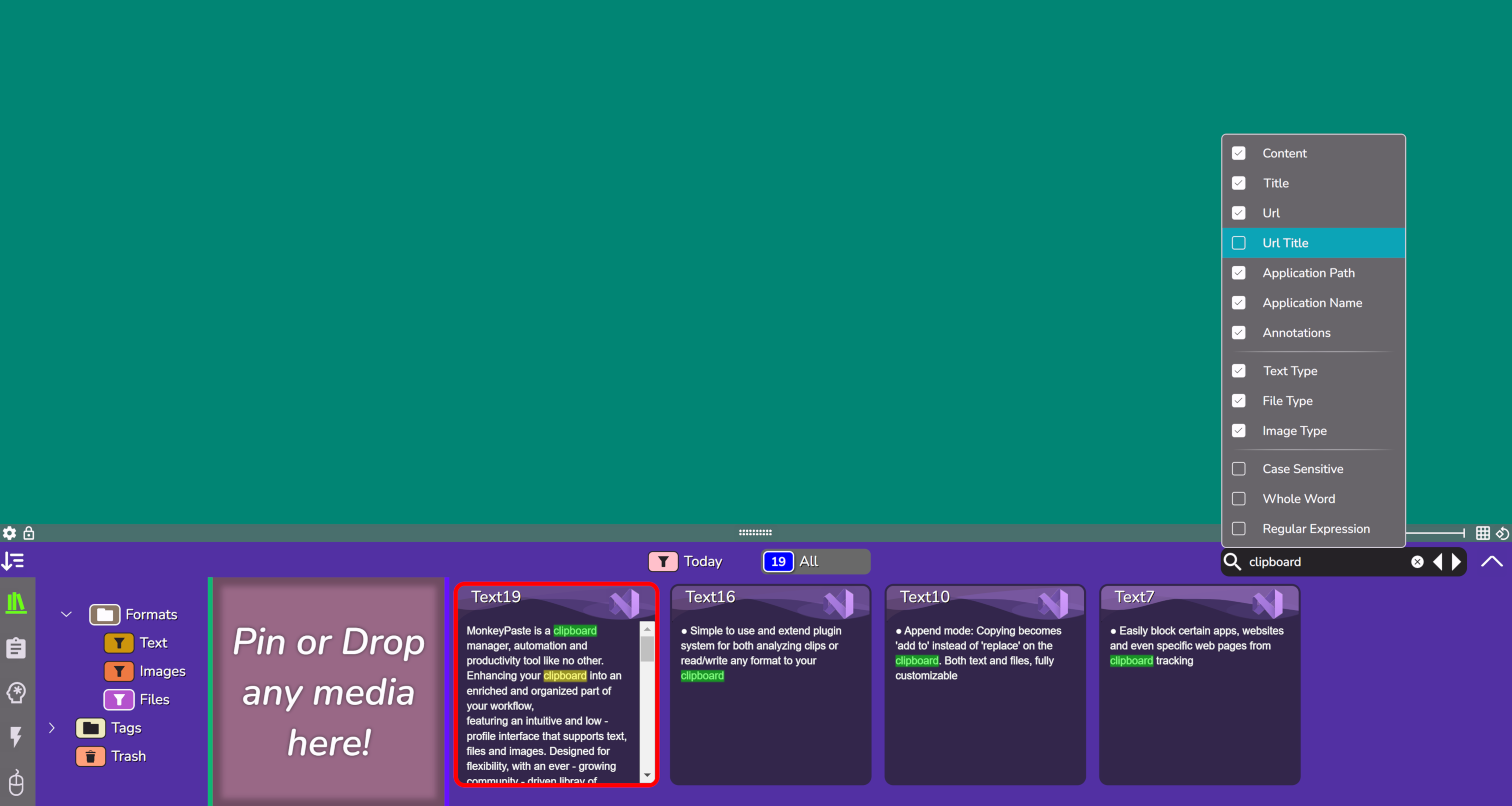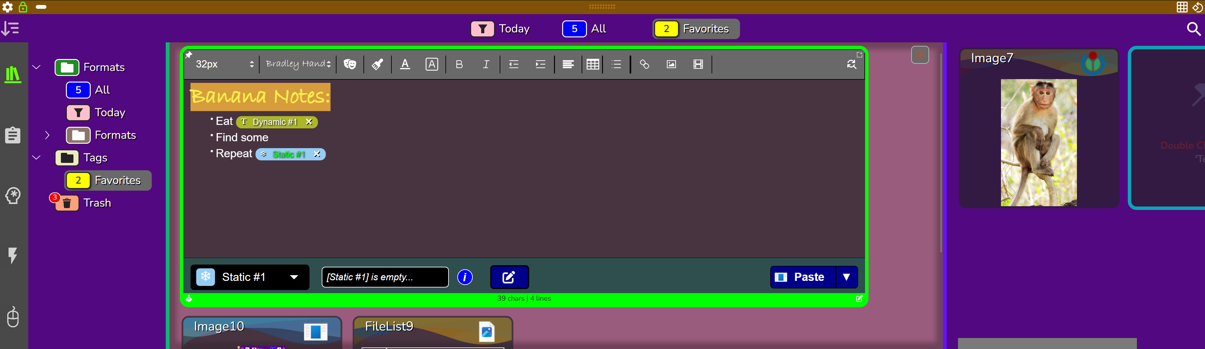 MonkeyPaste was designed from the ground up to evolve your clipboard into a vault for your bookmarks, notes and much more.